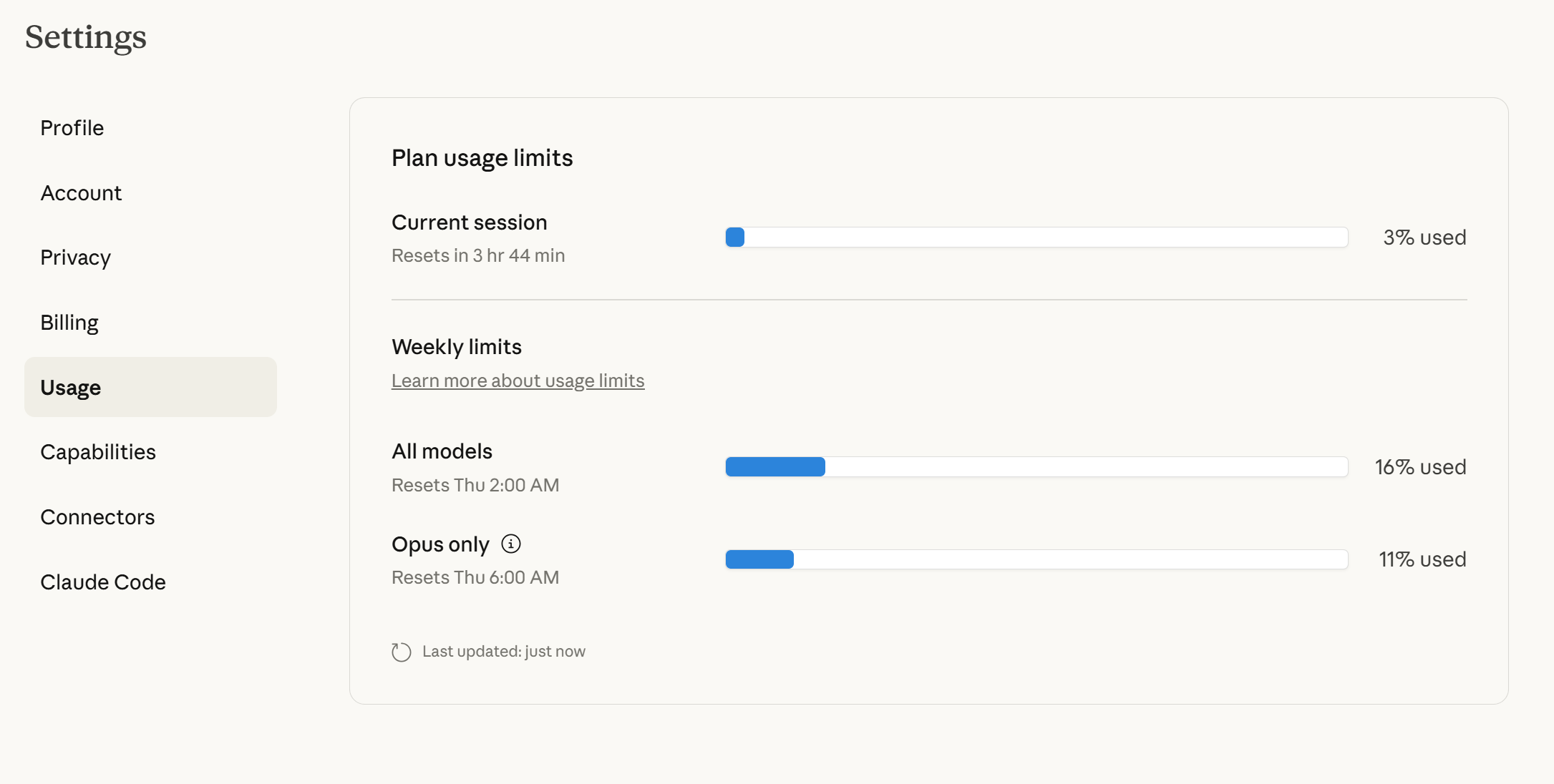 Раньше для проверки лимитов можно было использовать консольную утилиту ccusage через терминал. Это строннее решение.